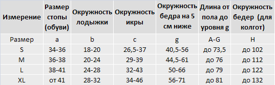 Таблица размеров:
