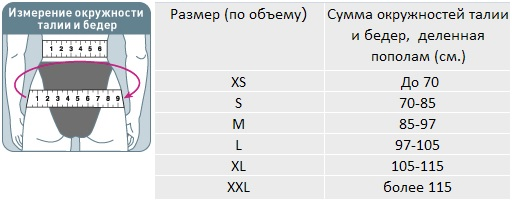 Для правильного выбора подходящего размера ортопедического корсета Orlett OBS-200 необходимо сантиметровой лентой измерить окружность талии и бедер, сложить и поделить пополам. Далее воспользоваться таблицей: