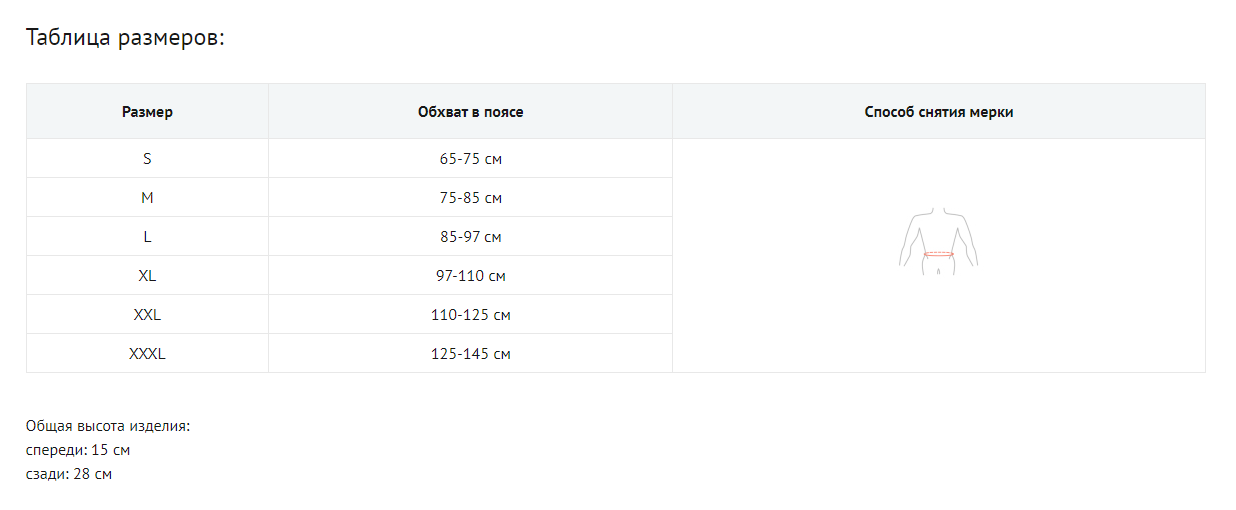 - В задней части расположены неэластичные вставки из материала ActivSpace для лучшей поддержки поясницы и 4 или 6 ортопедических планшеток (в зависимости от размера пояса)
