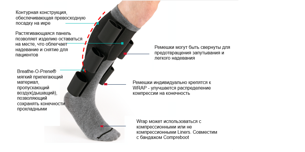 Комбинируется с бандажом для бедра, колена и стопы. Compreflex® для достижения полной компрессии ноги