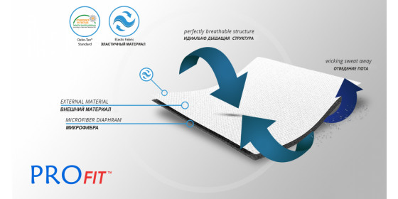Другой использованный материал ProFit – это двухслойная ткань, которая растягивается во всех направлениях, идеально моделируя форму конечности. Изделие отлично стабилизирует голеностопный сустав, поэтому идеально подходит для его иммобилизации после травм, операций, а также в профилактических целях.