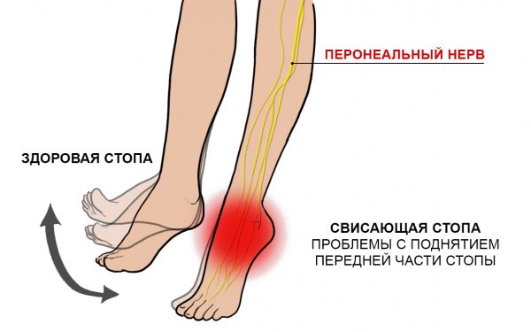 - паралич или слабость разгибателей стопы