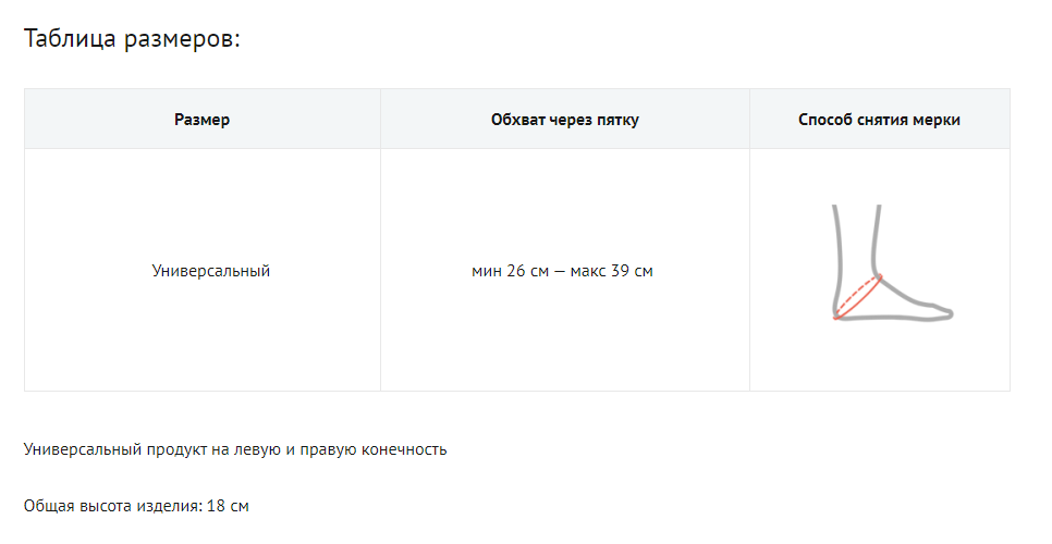 - Изделие подходит для левой и правой ноги