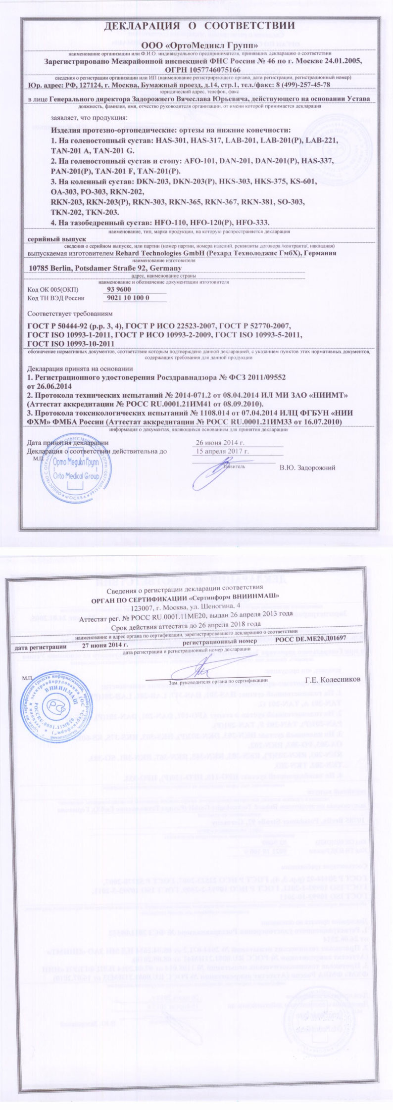 Ортез на коленный сустав Orlett RKN–203 2G, разъемный с полицентрическими шарнирами.
