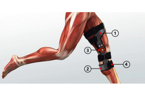 Ортез RAPTOR1R имеет 4-точечную систему поддержки, которая отлично стабилизирует и разгружает коленный сустав. Точки приложения – рама на передней части бедра, рама на задней части голени, ремень поперек нижней части бедра толкающий бедренную кость вперед и передний ремень на голени, предотвращающий ее смещение