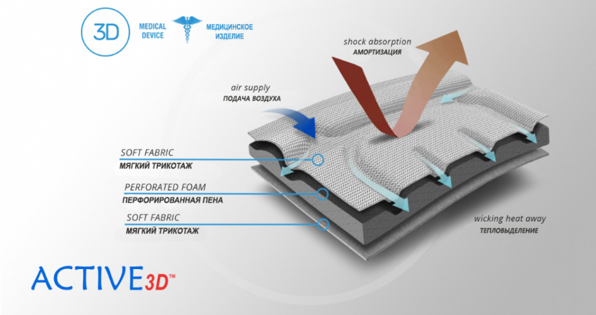 Изготовлен из материала Active3D™ это полностью водонепроницаемая ткань, не поглощает пот