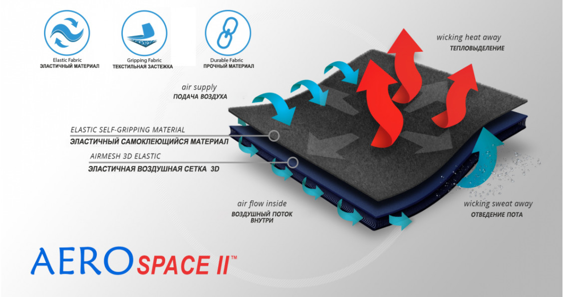 Изготовлен из материала AeroSpace II™. Это высокоэластичный материал, хорошо отводит пот и обеспечивает воздухообмен. Изделия из этого материала поддерживают нужную компрессию и температуру сустава.