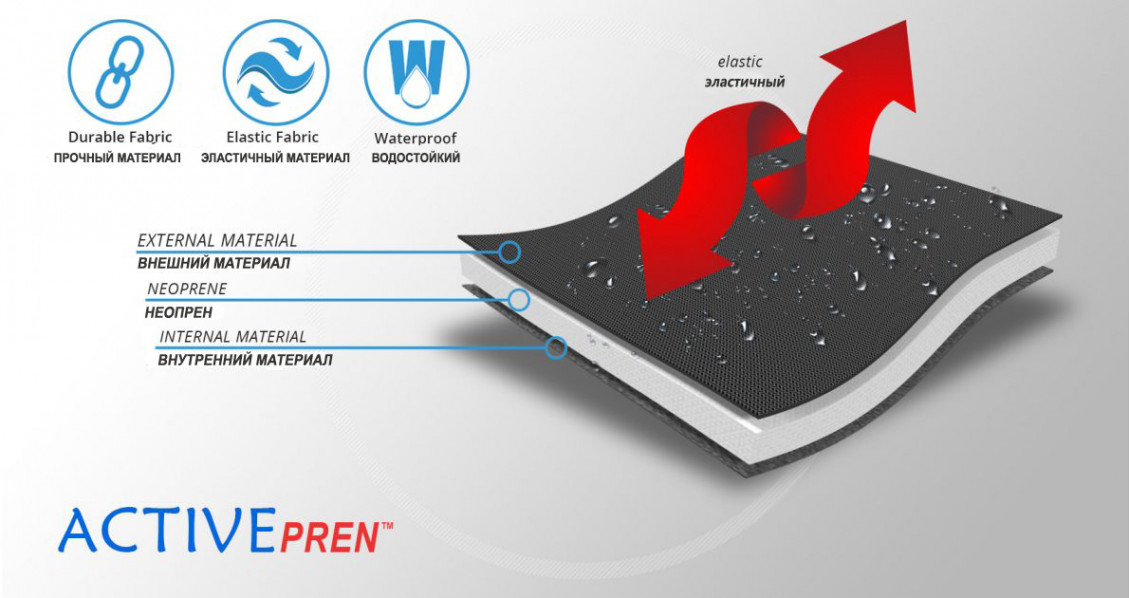 Ортез изготовлен из водостойкого материала ActivePren™ это трехслойный материал состоящий из внешней эластичной ткани и внутреннего слоя из неопреновой пенки. Материал характеризуется мягкостью и высокой эластичностью.