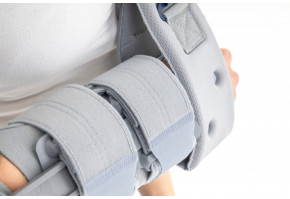 Ортез локтевого сустава с регулировкой подвижности AM-KG-AR/1R – является эффективным ортопедическим изделием для фиксации локтевого сустава под заданным углом. Благодаря применению ортопедических шин с регулировкой угла сгибания и разгибания с шагом по 15 градусов, была достигнута отличная стабилизация и фиксация изделия. Система ремней на липучках велкро устанавливает изделие в нужном положении, обеспечивает плотное прилегание ортеза к конечности и эффективную фиксацию сустава. Шины обеспечивают латеральную фиксацию верхней конечности. Система независимого крепежа шин к рукавам плеча и предплечья позволяет индивидуально, точно и легко подобрать место крепления шин к манжетам.