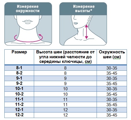 Для корректного подбора бандажа на шейный отдел позвоночника ORLETT БН6-53 необходимо cантиметровой лентой плотно, но не утягивая, измерить окружность шеи и расстояние от угла нижней челюсти до середины ключицы.