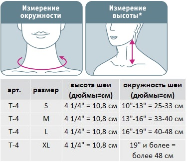 Для правильного выбора подходящего размера шейного бандажа с отверстием над трахеей Orlett PHP T4 необходимо сантиметровой лентой измерить высоту шеи (от угла нижней челюсти до ключицы) и ее окружность. Данная модель рассчитана на высоту шеи 10,8 см.