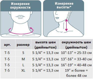 Для правильного выбора подходящего размера шейного бандажа с отверстием над трахеей Orlett PHP T5 необходимо сантиметровой лентой измерить высоту шеи (от угла нижней челюсти до ключицы) и ее окружность. Данная модель рассчитана на высоту шеи 13,3 см.